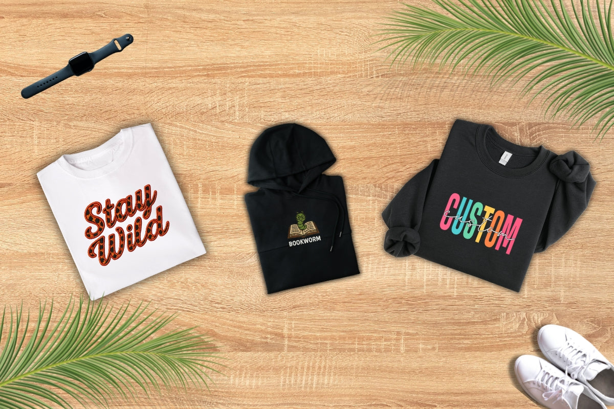 Custom Embroidered Gildan T-Shirt or Sweatshirt: Personalized Text Tee
