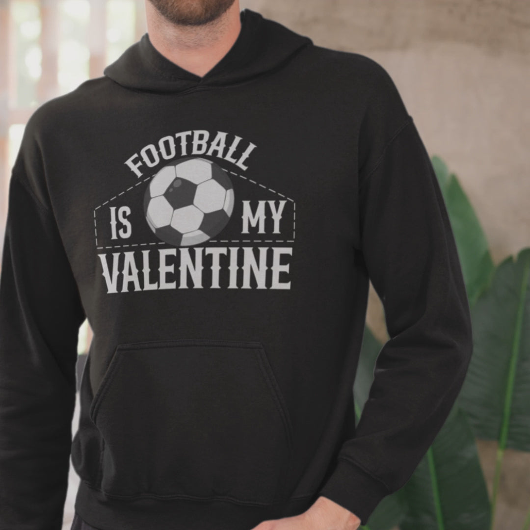 Football Is My Valentine Hoodie Funny Soccer Lover Hoodie Valentine's Day Gift for Football Fans Cozy Sports Pullover