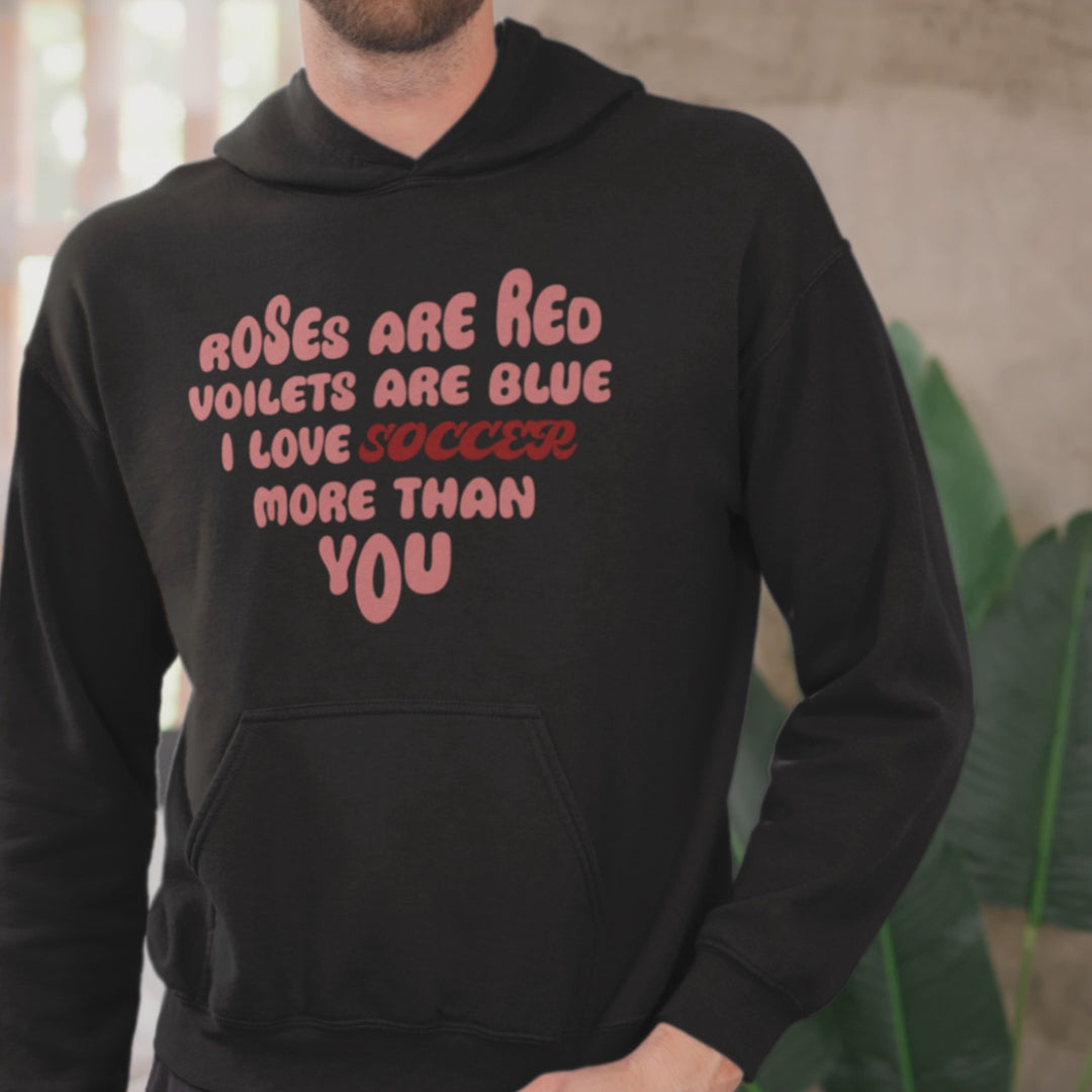 Funny Soccer Valentine Hoodie Roses Are Red I Love Soccer More Than You Hoodie Football Lover Gift