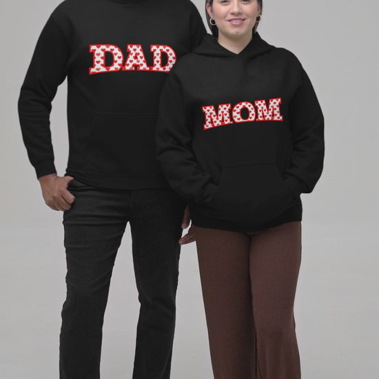 Celebrate love and family with these adorable matching Mom & Dad Hoodies! ❤️👨👩👧 Featuring a bold, heart-patterned "MOM" and "DAD" design, these cozy black pullover sweatshirts are the perfect way for parents to show their bond in style. Whether you're looking for a cute Valentine's Day outfit, a family-themed photoshoot look, or a special anniversary gift for mom and dad, these matching hoodies are a must-have!